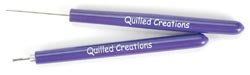 QUILLED CREATIONS-2 tools in one set! One is a needle and one is slotted. Both feature purple handles with a unique comfort grip. Perfect tools for learning the art of quiling. Keep these sharp tools out of reach of children. Needle tool measures 5.75 long and slotted tool measures 4.6 long.